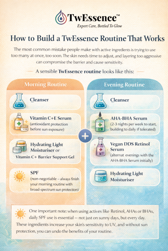 The most common mistake people make with active ingredients is trying to use too many at once, too soon. The skin needs time to adjust to new actives, and layering too aggressively can compromise the barrier and cause sensitivity.